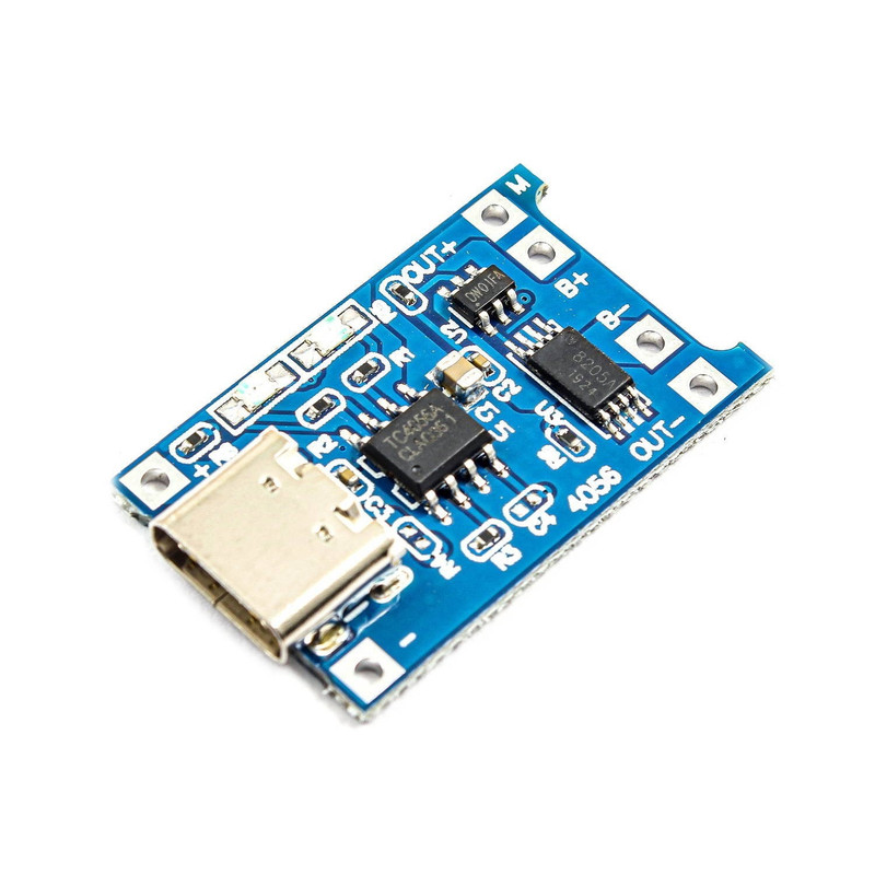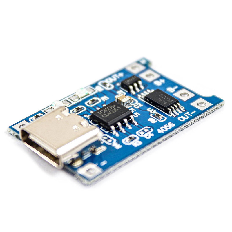 ماژول شارژر باتری لیتیومی، یک ماژول الکترونیکی است که با استفاده از تراشه TP4056 و یک پورت USB Type C، میتوان از آن جهت شارژ کردن باتریهای لیتیومی و همچنین شارژ باتریهای گوشی موبایل بهره برد. این ماژول حاوی دو نشانگر LED میباشد که برای نمایش وضعیت باتری، محافظت از شارژ و دشارژ باتری مورد استفاده قرار می گیرد. از دیگر ویژگیهای این ماژول میتوان به دقت بالا، عملکرد حفاظتی خوب از برد، کاهش خودکار جریان و جلوگیری از سوختگی و آسیب به تراشه اشاره نمود.