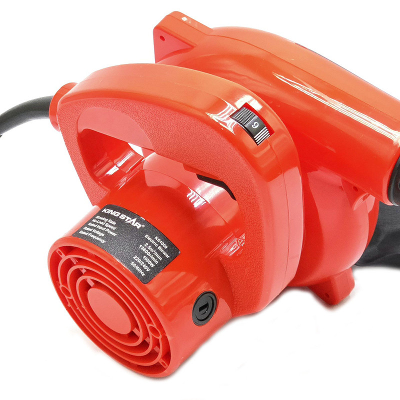 مشخصات دستگاه دمنده و مکنده دیمردار برقی کینگ استار: دارای کلید تنظیم سرعت دمش(دیمردار) حجم هوای خروجی:2.5 متر مکعب بر دقیقه قدرت: 1050 وات سرعت چرخش:13600 دور در دقیقه برق مصرفی:220 تا 240 ولت