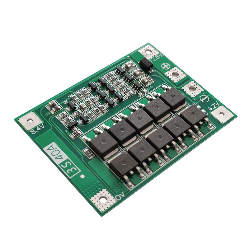 BMS ها محافظت هایی مانند قطع جریان در هنگام اتصال کوتاه را نیز ارائه میدهند. محصول فوق، برای سری کردن 3 سلول لیتیومی مناسب میباشد و حداکثر جریان دشارژ آن، 40 آمپر است. برای شارژ باتری لیتیومی 3 سل، به ولتاژ بین 12.6 تا 13 ولت نیاز دارید. دقت کنید که این ماژول، محدودیتی روی جریان شارژ اعمال نمیکند، در نتیجه برای شارژ صحیح باتری، به یک ماژول جداگانه که قابلیت محدود کردن جریان را داشته باشد نیز نیاز دارید.