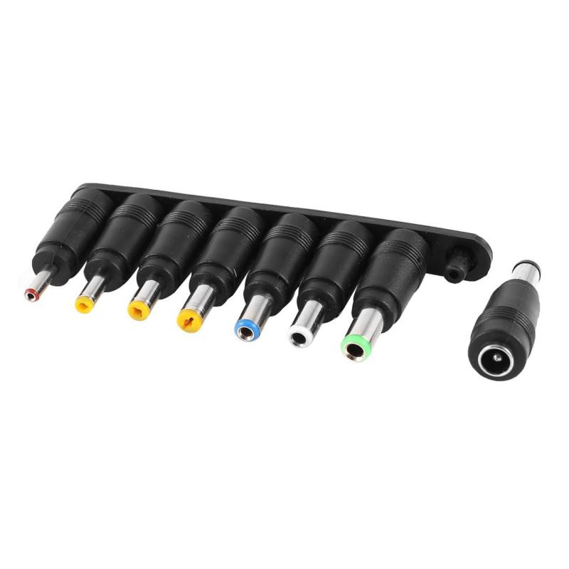 این محصول شامل 8 عدد از سر فیشهای آداپتوری پرکاربرد میباشد. با استفاده از این تبدیل ها میتوانید سوکت آداپتور معمولی (2.5 در 5.5 میلیمتر) را به انواع دستگاه ها مانند مودم، کارتخوان، برخی مدل های لپتاپ و مانیتور و ... متصل کنید. قبل از استفاده، از یکسان بودن ولتاژ و جریان آداپتور و وسیلهی مورد نظر اطمینان حاصل نمایید. در صورت اتصال ولتاژ غیر سازگار، امکان آسیب دیدن مصرف کننده و یا منبع تغذیه وجود خواهد داشت.