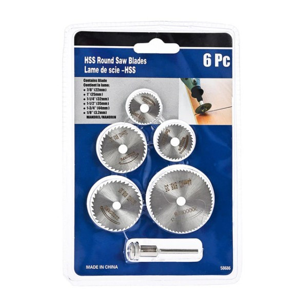 یکی از تولیدات این برند دیسک برش 6 عددی می باشد.دیسک برش 6 عددی از جنس فولاد می باشد و دارای مقاومت و طول عمر بالایی است.از این دیسک برای چوب ،فولاد، فلزات غیر آهنی و پلاستیک و...استفاده می شود.همچنین در این ست یک شفت {نگهدارنده} با ابعاد 3.2 میلیمتر وجود دارد.