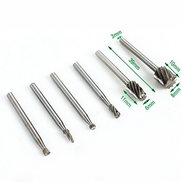 این مجموعه شامل 6 عدد مته مناسب نصب روی فرز مینیاتوری یا فرز انگشتی است که از جنس HSS و مناسب حکاکی ظریف روی چوب می باشد.قطر دنباله مته ها 3 میلیمتر است و طول کلی هر مته 4 سانتی متر است.توجه کنید که به دلیل سایز کوچک این مته ها مناسب استفاده بر روی فرز مینیاتوری و فرز انگشتی کوچک هستند