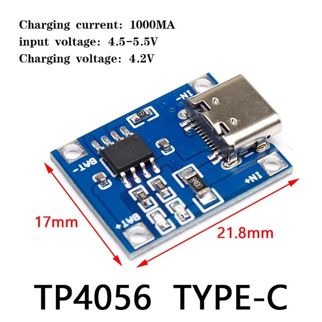 با این ماژول میتوان باتریهای لیتیومی را شارژ نمود. ماژول تغذیهی 5 ولتی خود را از طریق سوکت USB تامین کرده و از پینهای کناری سوکت جهت اعمال ولتاژ استفاده کرد. شارژر دارای دو نشانگر LED جهت نشان دادن شارژ و شارژ کامل است.