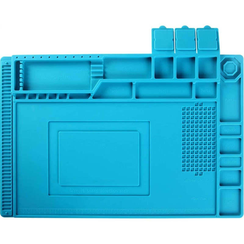 محصول پیش رو یک پد سیلیکونی نسوز مناسب برای تعمیر بردهای الکترونیک و موبایل و ... میباشد . بر روی این محصول چندین محل برای قرار گیری انواع قطعات SMD و انواع پیچ و آی سی و ... قرار دارد که بسیار کاربردی میباشد . همچنین محل قرار گیری قطعات SMD شماره گذاری دارد تا باتوجه به نوع قطعه بتوان قطعه مورد نظر را داخل محل های مورد نظر قرار داد.