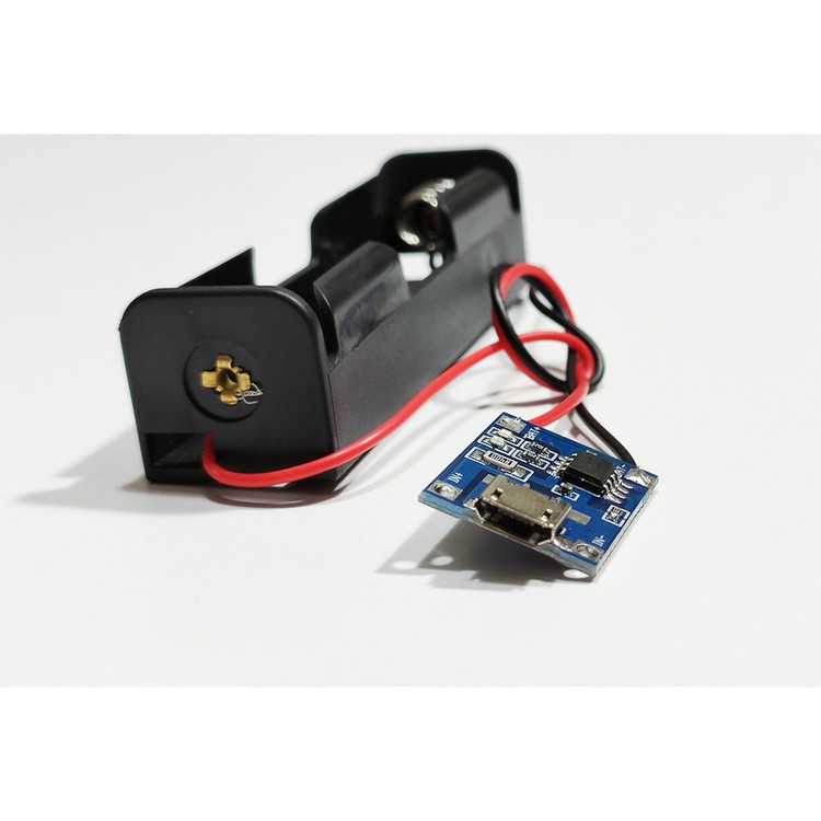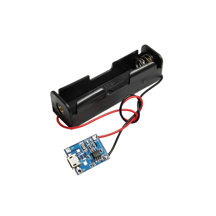 این محصول یک ماژول شارژر باتری لیتیومی مدل 4056 بوده که به جاباتری مخصوص باتری لیتیومی سایز 18650 متصل شده و مناسب شارژ این باتری ها میباشد. حداکثر جریان شارژ 1 آمپر بوده و بعد از اتمام شارژ به صورت خودکار جریان قطع میشود. برای تغذیه این ماژول شارژ، به شارژر تلفن همراه و یک کابل میکرو یو اس بی (کابل شارژ اندروید مدل قدیمی) نیاز خواهید داشت.
