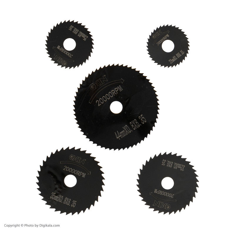 از تیغه های HSS برای برش انواع چوب ، پلاستیک و فلزات نرم و در حجم کم استفاده می شود . مجموعه فوق از 5 تیغه و یک شفت تشکیل شده است که از تیغه های بزرگتر برای برش چوب و از تیغه های کوچکتر برای برش فلزات نرم می توان استفاده کرد . از این مجموعه عمدتا برای فرزهای حکاکی مینیاتوری استفاده می شود . ذکر این نکته ضروری است که این مجموعه برای کارهای ظریف مناسب بوده و نمی توان انتظار برش در حجم و ضخامت بالا را از آن داشت . به دلیل کیفیت ساخت بالاتر نسبت به نمونه های مشابه این ابزار توانسته است مجوز واردات به کشورهای اتحادیه اروپا را کسب کند . برای کار با این تیغه ها استفاده از عینک ایمنی توصیه می شود . تنظیم دور دستگاه با توجه به جنس کار و میزان پیشروی متغیر می باشد .