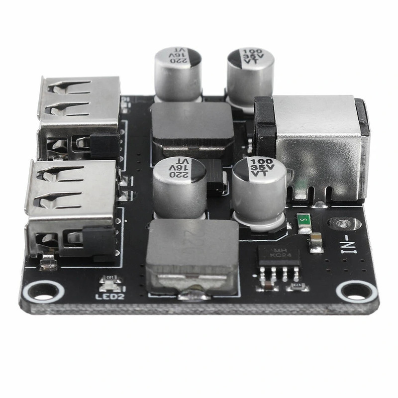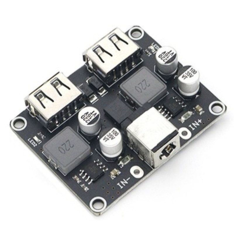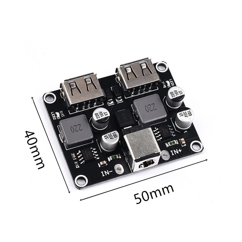 کاربرد ماژول XF-KC42-2 ، ساخت شارژر فست شارژ 24 واتی دو پورت با اتصال آن به یک منبع با ولتاژ بین 6 تا 32 ولت (دارای حداقل توان 48 وات) است. برای مثال باتری اتوموبیل، موتور سیکلت، ups، شارژر لپتاپ و یا آداپتور 12 ولت 4 آمپر به بالا. دقت کنید که این ماژول توان شارژ باتری لیتیومی و ... را ندارد و مناسب ساخت پاوربانک نیست و صرفا کاهندهی ولتاژ با خروجی usb فست شارژ است. ولتاژ خروجی پیش فرض، 5 ولت است و در صورتی که کابل و دستگاه های متصل شده از پروتکل های فست شارژ پشتیبانی کنند، یکی از حالت های 5 ولت 3.4 آمپر، 9 ولت 2.5 آمپر و یا 12 ولت 2 آمپر به صورت خودکار انتخاب و اجرا خواهد شد. در صورتی کابل و یا دستگاه از فست شارژ پشتیبانی نکنند، ولتاژ 5 ولت و جریان تا حداکثر 3.4 آمپر با توجه به توان دستگاه شما اعمال خواهد شد. خروجی های usb مجزا هستند و هر کدام میتوانند ولتاژ و جریان متفاوتی ارائه دهند. حداکثر خروجی هر پورت 24 وات (مجموعاً 48 وات) میباشد. ولتاژ ورودی مجاز 6 تا 32 ولت بوده و ولتاژ توصیه شده، 12 تا 15 ولت است. هر چه ولتاژ ورودی بالاتر از مقدار توصیه شده باشد، بهرهوری کمتر شده و در نتیجه گرمای تولید شده در هنگام شارژ (توسط ماژول، نه موبایل و یا تبلت) بیشتر میشود. در صورتی که از ولتاژ بالاتر از 15 برای تغذیه استفاده میکنید توصیهی اکید میشود برای دفع حرارت از هیت سینک مناسب استفاده کنید. هیت سینک را با چسب سیلیکون به پشت برد متصل کنید. دقت کنید که هیت سینک به پایه های بیرون زده از برد، تماس نداشته باشد. در صورت استفاده از باتری برای تغذیه ماژول، دقت کنید که باتری مورد استفاده قابلیت ارائهی جریان مورد نیاز را داشته باشد.