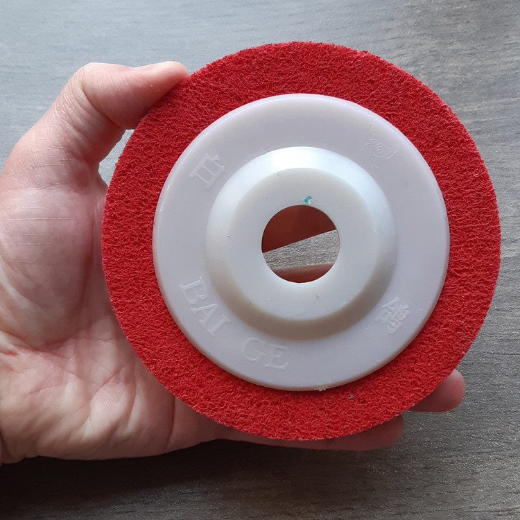 این مدل سنباده از جنس اسکاچ و با دانه بندی متوسط بوده و برای از بین بردن رنگ ، زنگ زدگی ، پرداخت کاری به کار میرود. شفت مرکزی این کالا 14 میلیمتری بوده اما فاقد مهره نگه دارنده مخصوص میباشد و باید به صورت جدا گانه تهیه گردد. قطر این سنباده 115 میلی متر بوده و قابل نصب بر روی دستگاه سنگ فرز مینی است. پهنای قسمت اسکاچی 30 میلیمتر و کلفتی بخش اسکاچی آن هم 12 میلیمتر است. نصب و استفاده از این ابزار بسیار ساده بوده و برای هر کسی که یک دستگاه سنگ فرز مینی داشته باشد ، کاربردی خواهد بود.