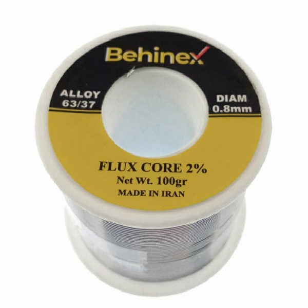 سایر توضیحات : وزن ۱۰۰ گرم قطر ۰.۸ میلیمتر درصد قلع و سرب ۶۳/۳ دارای روغن flux core 2% کیفیت عالی و سهولت در استفاده قابل استفاده در مونتاژ بادهای صنعتی و غیر صنعتی