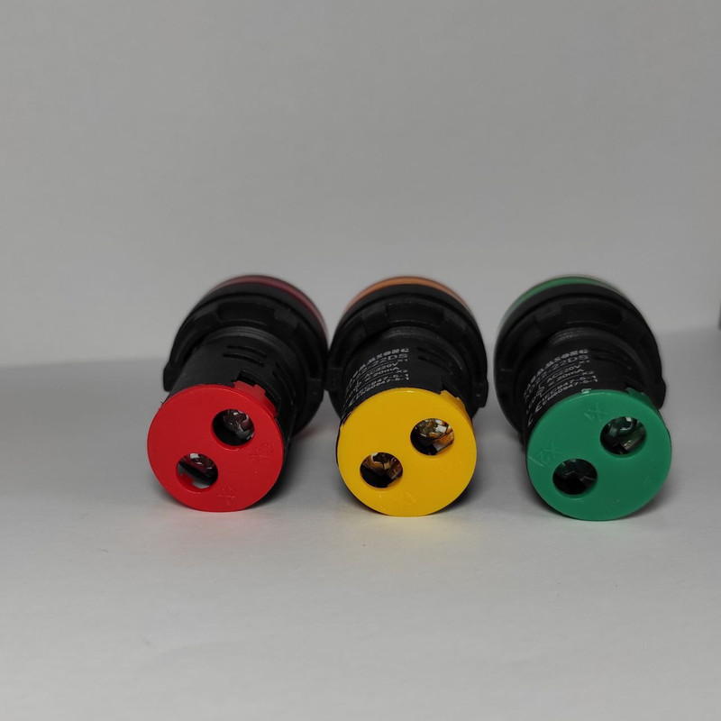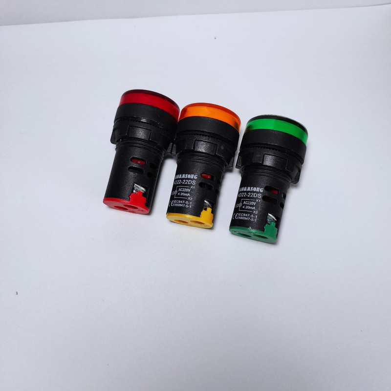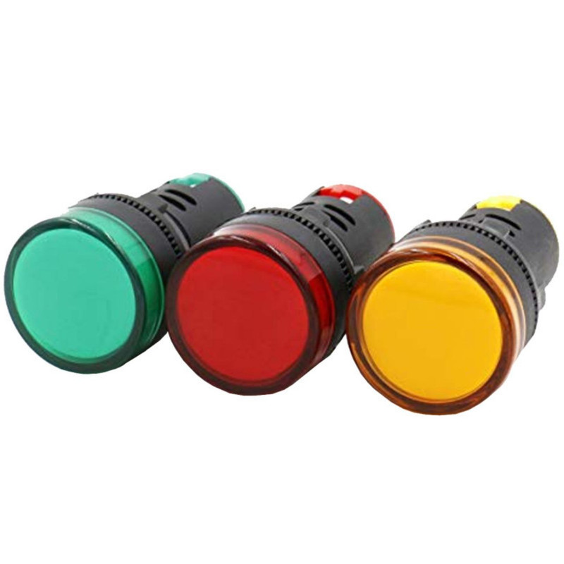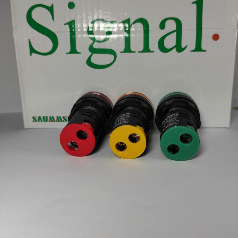 چراغ سیگنال های LED قطر 22 میلیمتر عمدتا در تابلو برق ها مورد استفاده قرار می گیرد تا روشن بودن کل مدار یا بخشی از مدار را نشان دهد. این سایز چراغ سیگنال ها قابل نصب در سوراخ با قطر 22 میلیمتر روی تابلو برق می باشد. رنگ لامپ های LED داخل چراغ در سه رنگ قرمز، زرد، سبز، آبی موجود می باشد. ولتاژ عملکرد چراغ سیگنال ها 220 ولت قابل استفاده در جریان برق مستقیم متناوب (AC) می باشد. بدنه چراغ سیگنال ها از ماده اشتعال-مقاوم و اشتعال-خاموش شونده پلی بوتیلن ترفتالات (PBT) تقویت شده ساخته شده است. این مجموعه شامل سه عدد چراغ سیگنال های LED در رنگهای زرد و قرمز و سبز می باشد