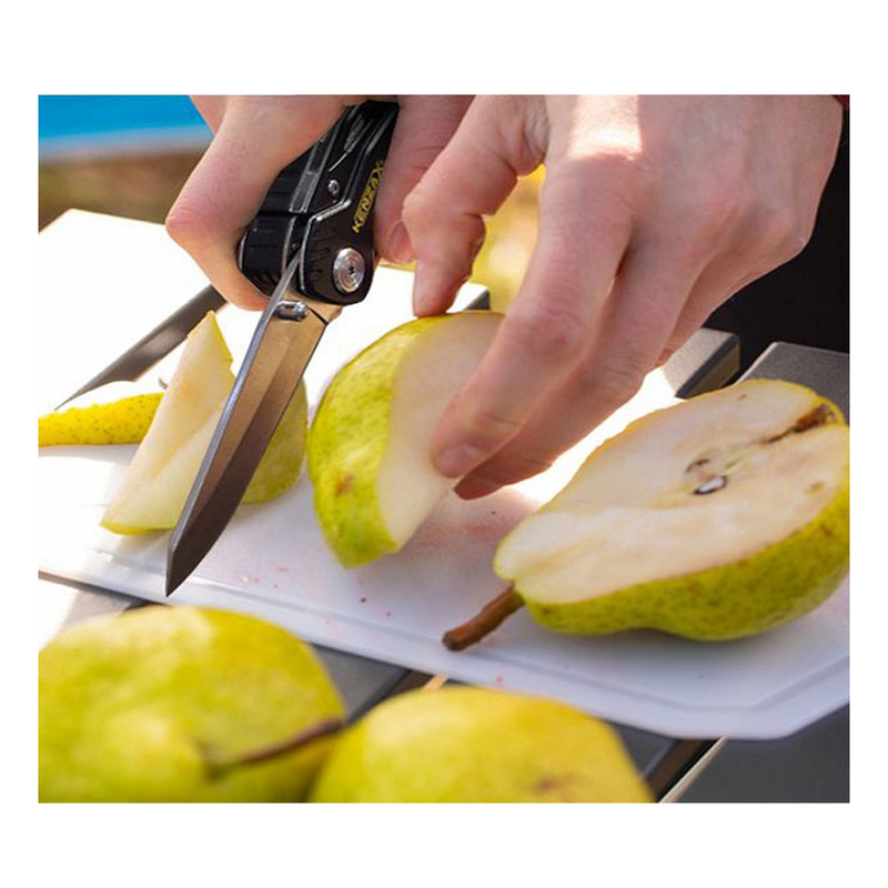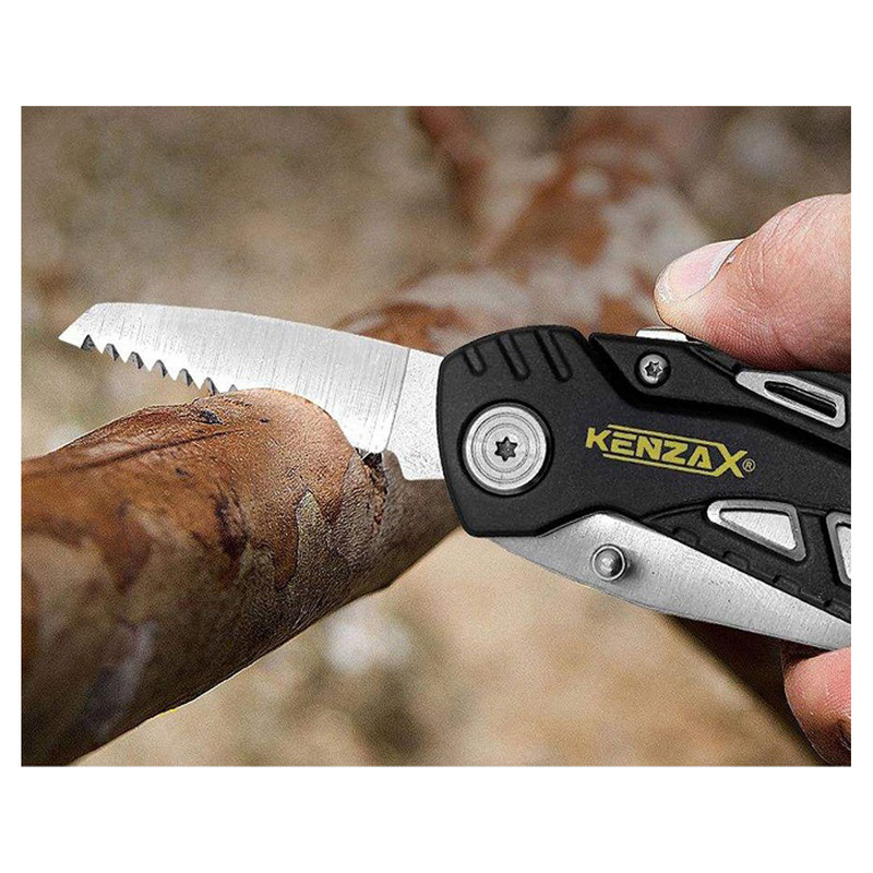 مجموعه ابزار چندکاره کنزاکس مدل DISCOVERYkmf-111 طراحی جذابی دارد و نوع جمع شدن آن به همراه یک کیف برای اتصال به کمر و حمل، آن را از بقیه متمایز میکند. این مجموعه ابزار، بهترین ابزار جهت طبیعت گردی (کمپینگ، کوهنوردی، شکار، ماهیگیری، پیاده روی و مواقع اضطاری است که دارای 11 ابزار و 11 عملکرد است. نوع چاقوی آن تاشو و بسیار برنده میباشد مجهز به ضامن ایمنی چاقو جهت ایمنی کاربر است. در هنگام استفاده از این ابزار به دست شما آسیبی نخواهد رسید. به علاوه جنس آلومینیوم به کار رفته در دسته آنهم باعث سبکی وزن میشود وتمامی تیغه های این ابزار از جنس فولاد ضدزنگ 420 و ضد خوردگی است و شما در هر شرایط آب و هوایی از آن میتوانید استفاده کنید. kmf-111 دارای سوهان ناخون ، بطری بازکن و پیچگوشتی دوسو با سری3 میلیمتر و چهارسو ، کابل-تسمه بر (ویژه کوهنوردان) ، و تیغ اره دو طرفه ، انبردست ، سیم چین و دمباریک میباشد. این قابلیتها در یک مجموعه ابزار به شما امکان استفاده در هر مکان و شرایطی را میدهد. مجموعه ابزار چندکاره کنزاکس kmf-111 با ابعاد مناسب و کیفیت برزنتی باکیفیت همراه همیشگی شما در سفر خواهد بود و از داشتن این مجموعه لذت خواهید برد.