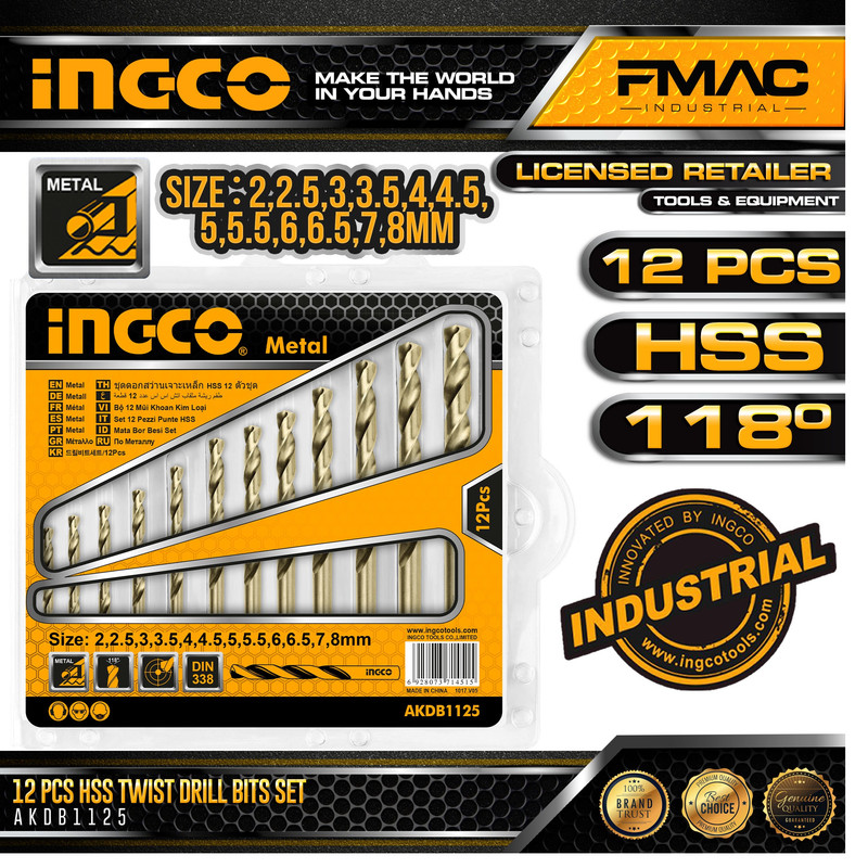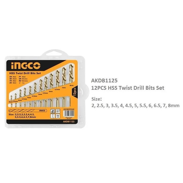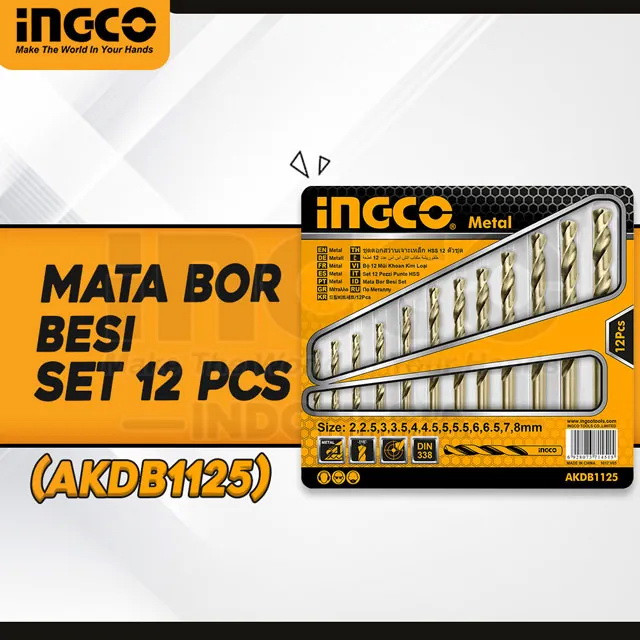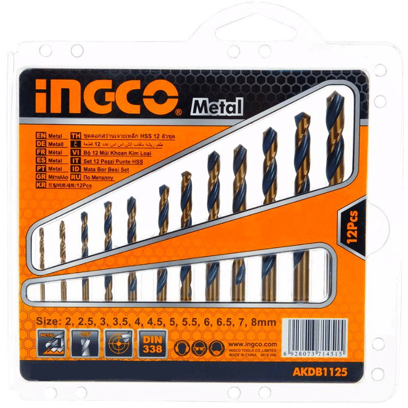 مجموعه 12 عددی مته آهن اینکو مدل AKDB1125 ساخته شده از ترکیب فولاد تندبر (HIGH SPEED STEEL) که مقاومت و استحکام بالایی در برابر ساییدگی خوردگی و حرارت دارد