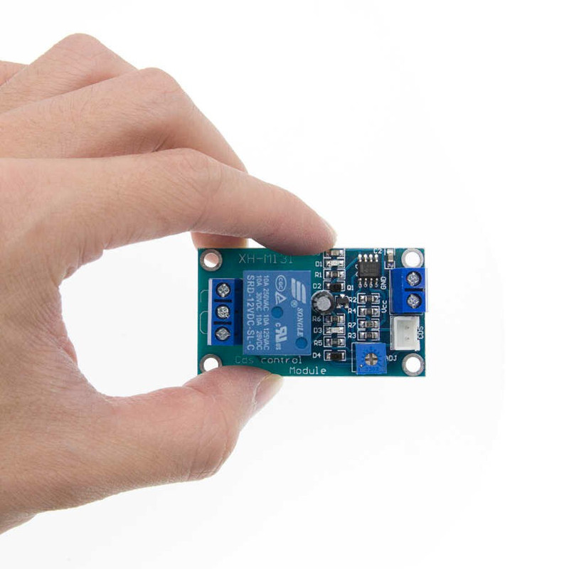 برد فتوسل 12 ولت برای روشن و خاموش کردن خودکار چراغهای 12 الی 220 ولت در روز و شب بکار میرود. این برد برای راهاندازی به ولتاژ 12 ولت حداقل 200 میلیآمپر برای تغذیه نیاز دارد. خروجی این برد یک رله 10 آمپری میباشد که دارای پایههای NO و NC بوده و میتواند هر دو حالت روشن و خاموش را به هنگام تاریکی یا روشنایی داشته باشد. برای تنظیم حساسیت این کلیدنوری یک پتانسیومتر بر روی برد در نظر گرفته شده است. از جمله کاربردهای کیت مذکور میتوان به ساخت سیستم روشنایی خودکار چراغهای 12 ولت اتومبیل موقع تاریک شدن هوا، روشن کردن خودکار چراغهای 12 ولت یا 220 محوطه در شب، روشنایی خودکار در سیستمهای خورشیدی و 12 ولت، ساخت دزدگیر نوری با قطع شعاع نورانی و دهها مورد دیگر اشاره کرد.