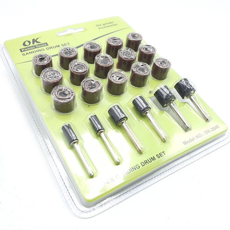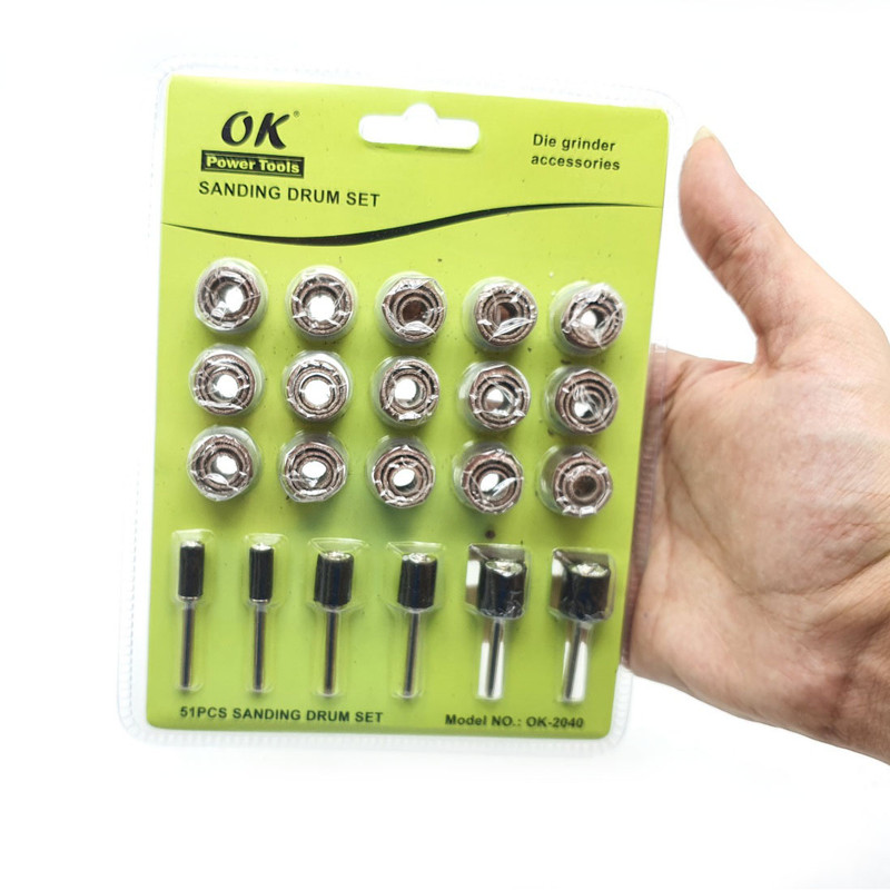 امکان استفاده توسط فرز انگشتی و انواع دریل دارای 15 عدد سنباده رولی سایز بزرگ دارای 15 عدد سنباده رولی سایز متوسط دارای 15 عدد سنباده رولی سایز ریز دارای 6 عدد پایه نگهدارنده سنباده رولی در سه سایز مختلف