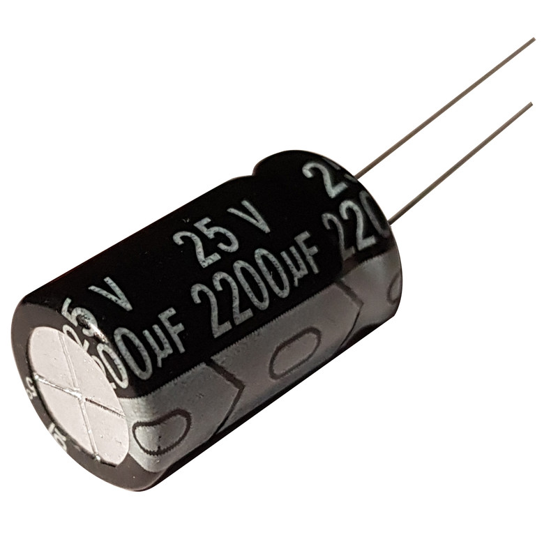خازن الکترولیت 25 ولت 2200 میکرو فاراد کد 110 بسته 5 عددی