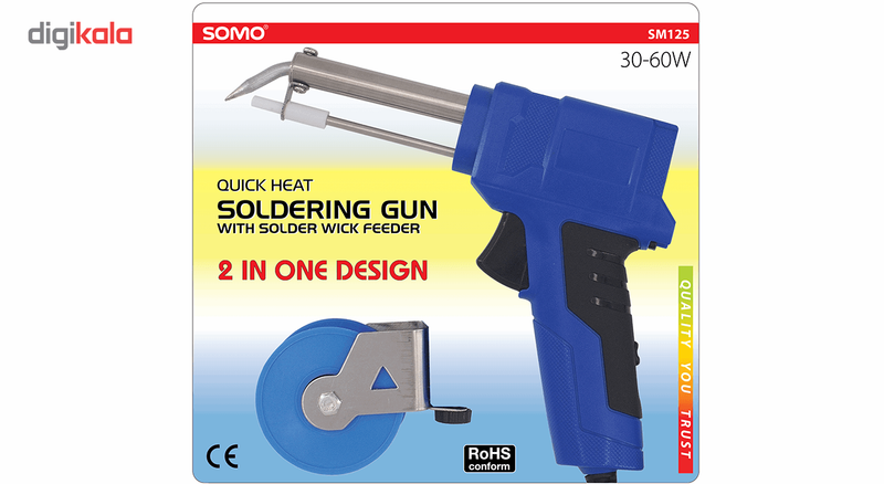 حتما برای شما هم پیش آمده که هنگام لحیم کاری یک دست شما با هویه و دست دیگر با سیم لحیم اشغال شده باشد و برای ثابت کردن محل لحیم کاری به مشکل برخورده باشید.هویه سومو مدل SM125 این مشکل شما را حل نموده است به طوری که سیم لحیم در پشت هویه قرار میگیرد و از محلی که تعبیه شده تا به سر هویه میرسد.کافی است با فشار دادن ماشه تفنگ سیم لحیم ره به سمت محل لحیم کاری حرکت دهید.این محصول را می توان با کلیدی که روی دسته تفنگ طراحی شده در 2 حالت 30 و 60 وات قرار داد