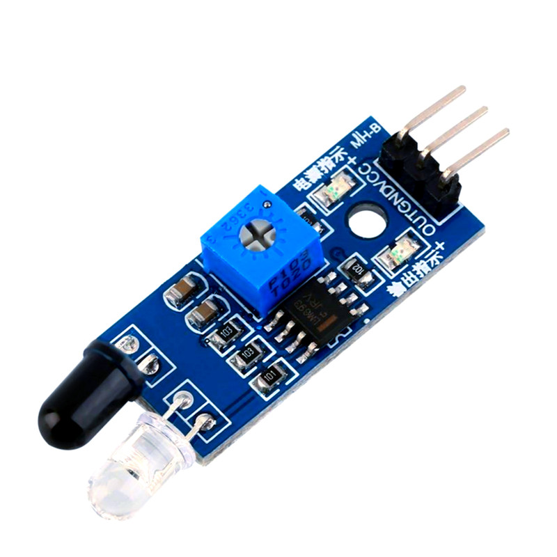 هنگامی که ماژول مانعی را در مقابل سیگنال ساتع شده تشخیص می دهد، چراغ سبز روی مدار روشن می شود. این ماژول از 2 تا 30 سانتیمتر با زاویه ی35 درجه توانایی تشخیص موانع را دارد. با گردش پتانسیومتر در جهت عقربه های ساعت، فاصله ی تشخیصی افزایش و با گردش پتانسیومتر در خلاف جهت عقربه های ساعت، فاصله ی تشخیصی کاهش می یابد. شما می توانید از این ماژول به راحتی بر روی ربات جهت تشخیص مانع و ربات های مسیریاب خطی و همچنین کاربردهای بسیار دیگر در پروژه های خود به همراه بردهای آردوینو استفاده کنید.