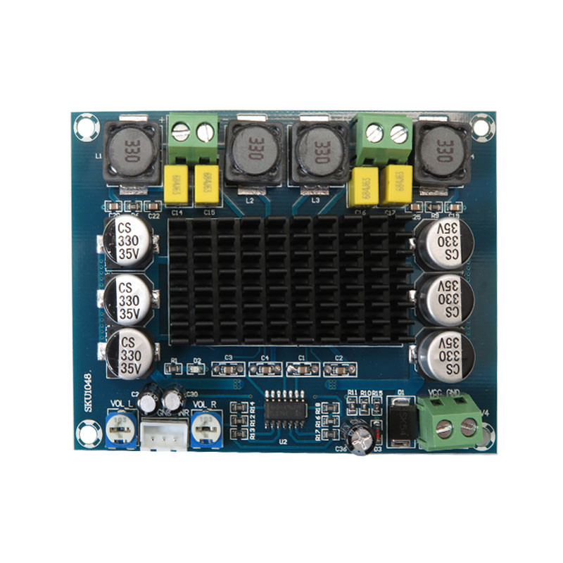 ماژول های آمپلی فایر برای اضافه کردن اسپیکر به پروژه های الکترونیکی کاربرد دارند . ماژول امپلی فایر دوبل TPA3116D2 ، دارای کیفیت صدای خروجی بالا ، دارای تراشه ی front-facing بر روی برد برای بالاتر بردن حساسیت صدای خروجی مدار . این ماژول دارای دو کانال استریو است . بر روی برد این آمپلی فایر پتانسیومتر های برای تنظیمات میزان صدای راست و چپ اسپیکر قرار گرفته است .