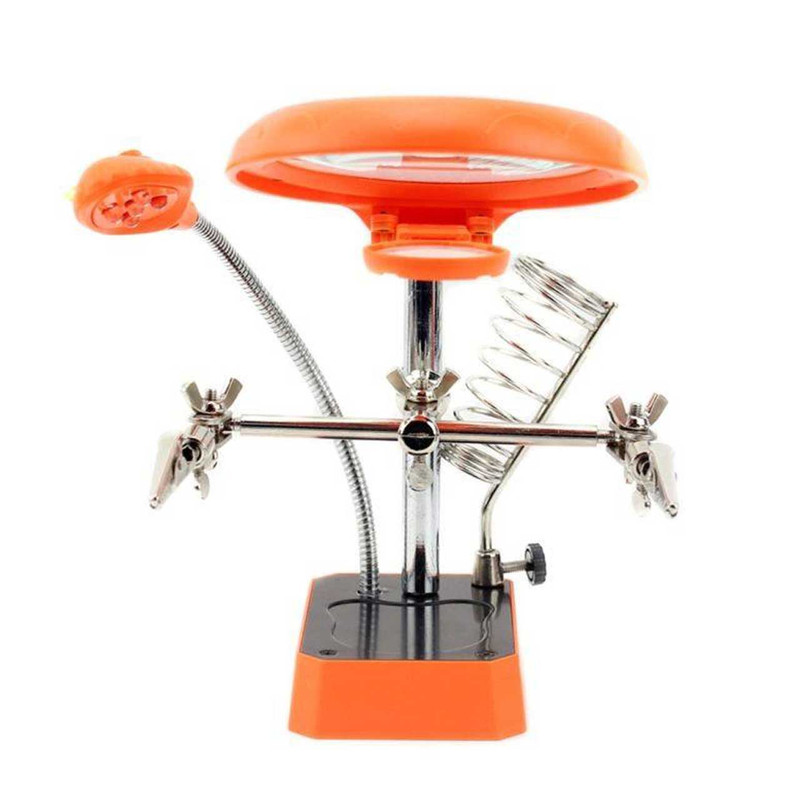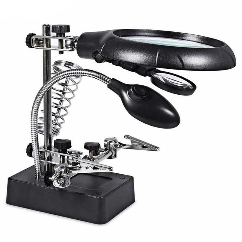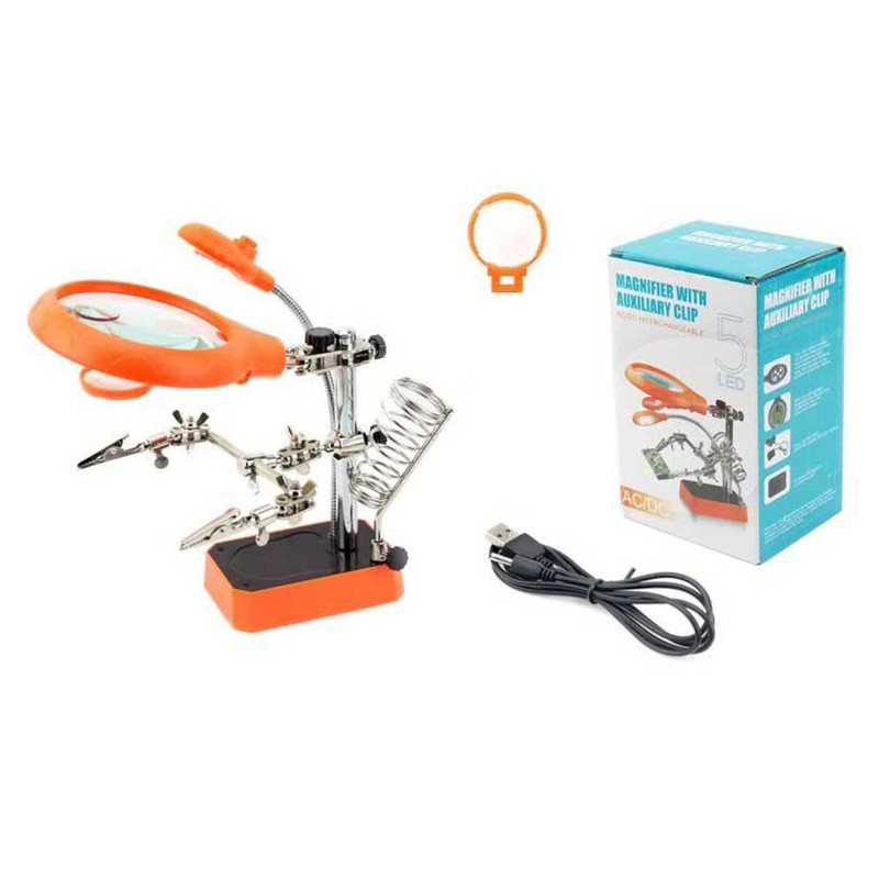 سایر توضیحات : دارای 2 عدد ذره بین دارای محفظه نگهداری هویه دارای نور LED دارای گیره نگهدارنده برد و قطعات به همراه یک عدد آداپتور