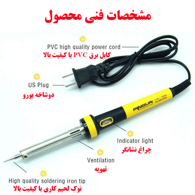 هویه پین سان از توان حرارتی 450 درجه سانتیگراد برخوردار است و برای کاربردهای لحیم کاری عمومی، مانند قطعات الکتریکی مرکز خرید و اتصالات سیم کشی ایده آل است. دسته مقاوم در برابر حرارت و ضربه از دست شما در هنگام استفاده محافظت می کند این هویه از مواد بادوام با کیفیت خوب و سازگار با محیط زیست ساخته شده است. هویه لحیم کاری با مواد با کیفیت و عملکرد گرمایش سریع بسیار مفید است. این محصول با برق 110 ولت تا 220 کار می کند. از ویژگی های مهم این هویه نوک نیکل اندود شده است.