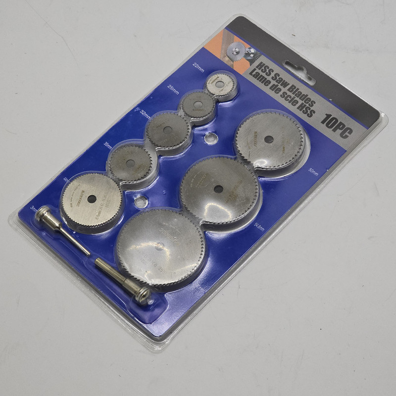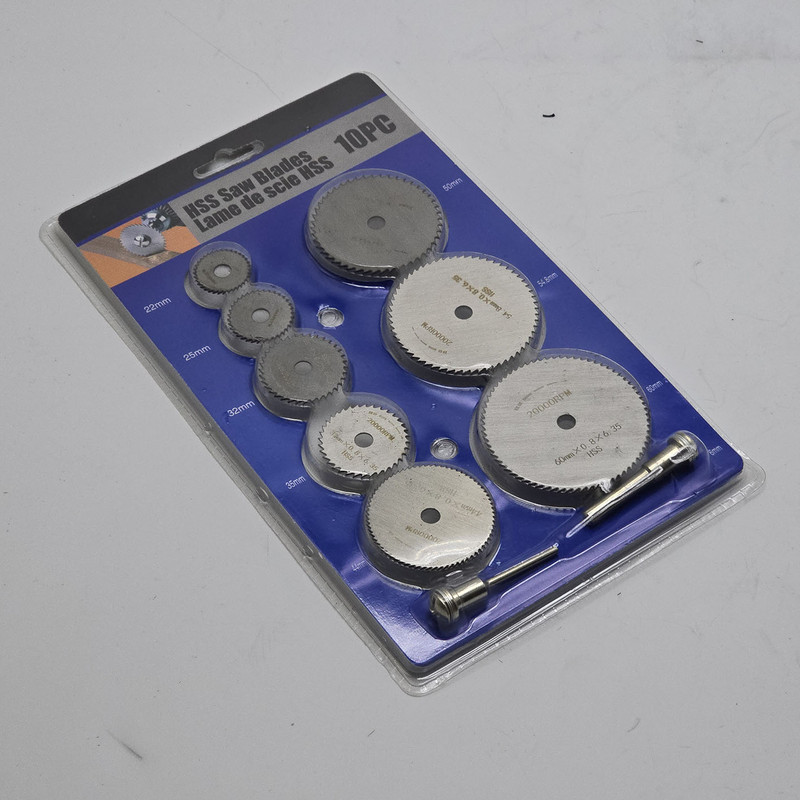 این تیغ ها که توسط یک شفت در جای خود محکم شده و بر روی انواع فرز های مینیاتوری و دریل شارژی و دریل برقی بسته می شود برای برش انواع چوب ، پلاستیک و فلزات نرم و در حجم کم استفاده می شود . محصول فوق مناسب برای برش چوب است. این محصول از 8 تیغه و 2 رابط تشکیل شده است که از هریک از تیغهها برای برش چوب در سایزهای مختلف استفاده میشود. از این مجموعه عمدتا برای فرزهای حکاکی مینیاتوری استفاده می شود. این مجموعه دارای 8 تیغه در سایزهای 22، 25، ،32 ،32، 35 ، 44 ،50 ،54 ،60 میلیمتر است. همچنین وزن کلی آن 100 گرم می باشد .