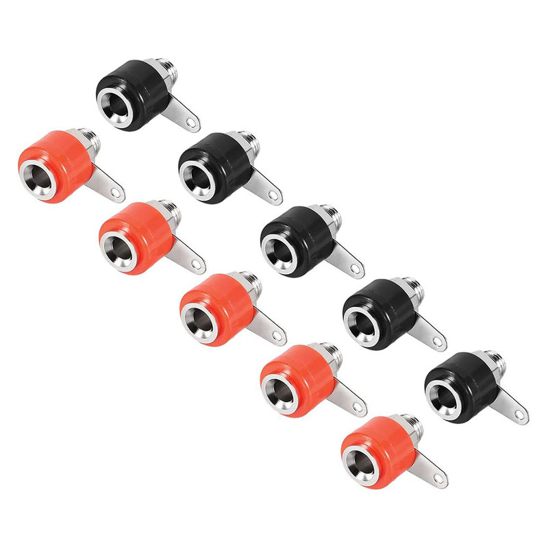 فیش مادگی منبع تغذیه مدل 4mm بسته 10 عددی شامل : 5 عدد رنگ مشکی و 5 عدد رنگ قرمز - قابل نصب بر روی منابع تغذیه و اتصال فیش تغذیه به آن