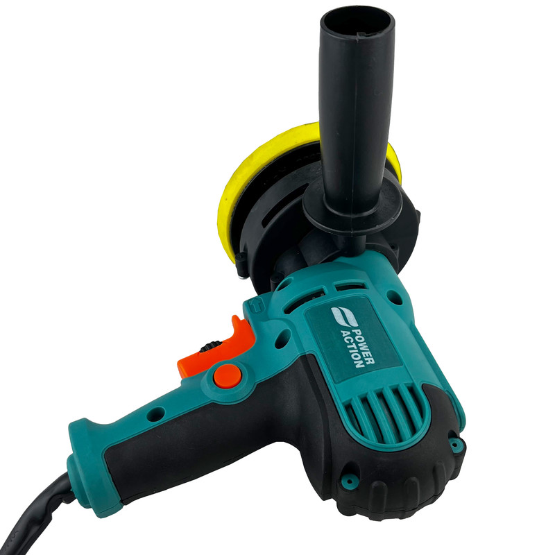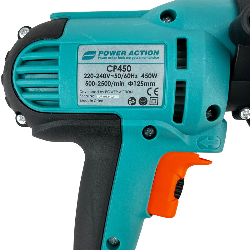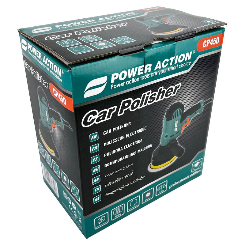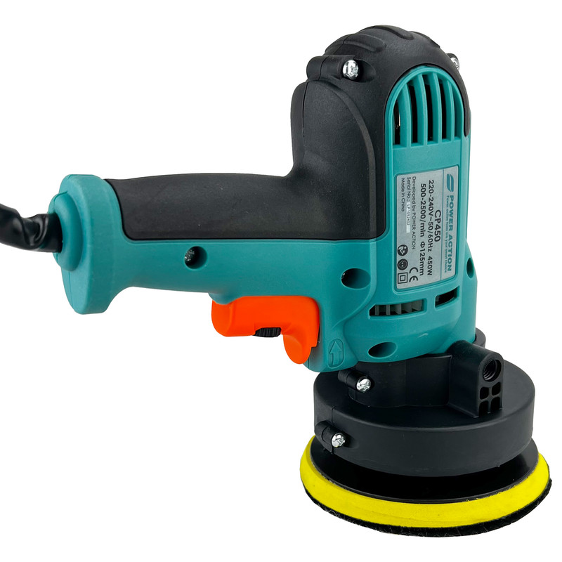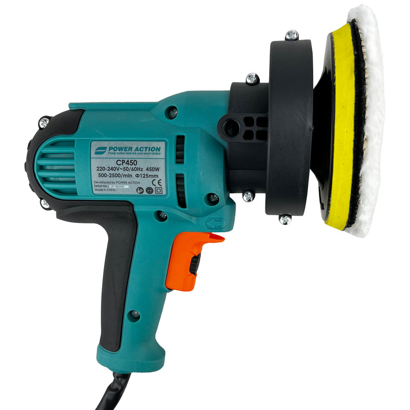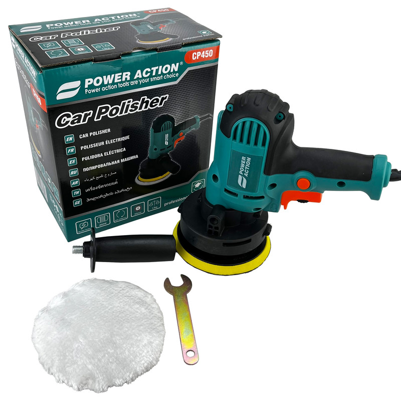 دستگاه پولیش تفنگی پاور اکشن مدل CP450 دیمردار یکی از ابزارهایی هستند که برای پخش یکنواخت مایع پولیش بر روی سطوح مختلف استفاده میشود. از این دستگاه میتوان برای درخشندگی سطوح مختلف مانند سطح فلزی ماشین، پارکت، سنگ، سرامیک و غیره استفاده کرد. پولیش تفنگی پاور اکشن با استفاده از تکنولوژی روز دنیا مدل CP450 و توان 450 واتی خود را روانهی بازار کرده که سرعت حرکت آزاد آن 2500 دور در دقیقه میباشد و با کلید تنظیم سرعت تعبیه شده میتوان سرعت گردش آن را کنترل کرد. صفحه اصلی آن از نوع چسبی و قابل تعویض میباشد و حداکثر قطر آن 125 میلیمتر است. از ویژگی هایی که این محصول را از دیگر محصولات هم رده خود متمایز میکند میتوان به طراحی ارگونومیک بدنه، کیفیت ساخت بالا بدنه، سیم پیچ تماما مس،وزن کم (1.1kg)و همراه داشتن پد پولیش، آچار مخصوص و دسته کمکی (مناسب برای کار با هر دو دست چپ و راست) اشاره کرد.در مجموع پولیش تفنگی پاور اکشن با داشتن موتور 450 وات واقعی و کیفیت بالایی که در متریال آن استفاده شده یک محصول با دوام بالا و درجه کیفی A معرفی کرد.