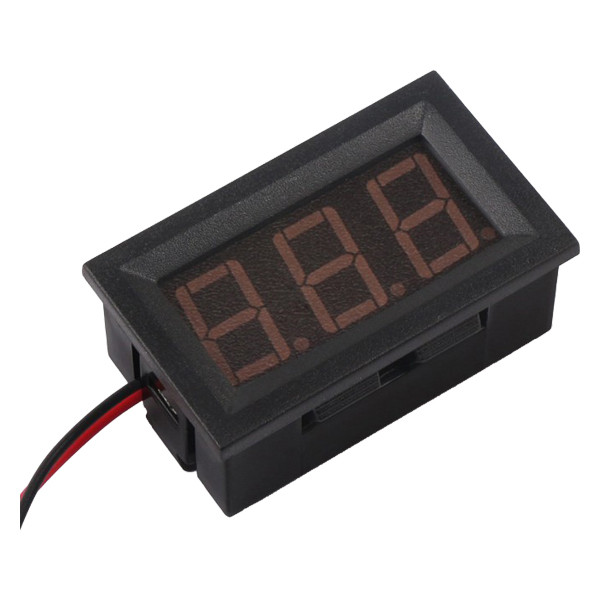 ماژول ولت متر دیجیتال 4.5 تا 30 ولت، برای اندازه گیری و نمایش ولتاژ DC مورد استفاده قرار میگیرد. این ولتمتر 0.36 اینچی، دارای ولتاژ با دامنه 4.5-30 ولت DC و نمایشگر سون سگمنت قرمز رنگ با سایز 0.36 اینچ و دو سیم قرمز و مشکی میباشد. که سیم قرمز به مثبت و سیم مشکی به منفی متصل می شود . به منظور دستیابی به بهترین دقت اندازه گیری، ولت متر به طور خودکار موقعیت نقطه اعشار را با توجه به اختلاف ولتاژ اندازه گیری شده جابجا می کند. از این ماژول می توان جهت اندازه گیری ولتاژ در ماشین و انواع مدارات مختلف در بازه ی 4.5 تا 30 ولت بهره برد. این ماژول ضد رطوبت، ضدآب، ضد شوک و ضد روغن نیست. لطفا هنگام استفاده رعایت کنید.