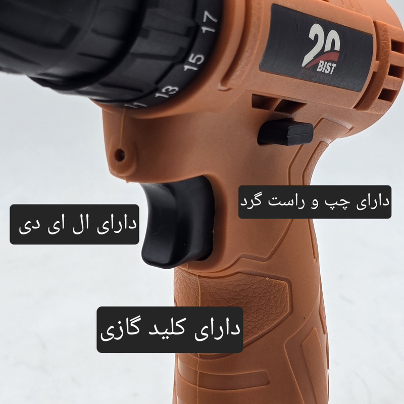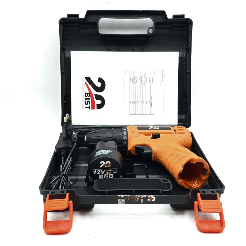 دریل پیچ گوشتی شارژی برند بیست تک باتری کیفی مدل 12V از جمله ابزارهای چند منظوره موجود در بازار میباشد که در انواع صنعتها به ویژه کارگاهها مصارف خانگی مناسب کار میباشد در این دریل۱۲ ولت لیتیومی یک و نیم آمپر تعبیه شده که این وسیله را برای انجام کارهای سبک تا متوسط مناسب کرده است با توجه به اینکه در دستگاه سه نظام ۱۰ میلیمتری اتوماتیک استفاده شده است امکان تعویض مته را برای کاربر سریع و آسان میکند این دستگاه از یک گیربکس دو سرعته بهره میبردسرعت آن را با توجه به تغییر دهید همچنین در دستگاه یک ال ای دی تعبیه شده که برای روشن کردن محیطهای تاریک بسیار مفید است