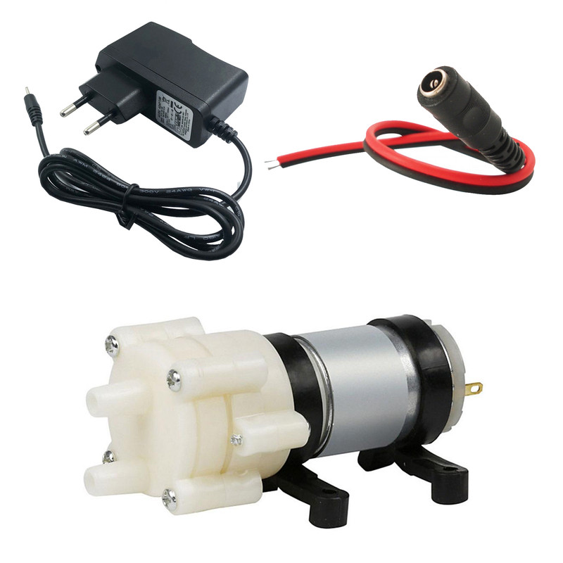 کیت پمپ آب و هوا دارای آداپتور برق 12 ولت و (کاملا مونتاژ شده و آماده استفاده ) می باشد . این پمپ دیافراگمی قابلیت انتقال ۱٫۵ تا ۲ لیتر در دقیقه را دارا بوده و توان مکش تا عمق ۲ متر را دارد. همچنین علاوه بر پمپاژ مایعات ، توانایی پمپاژ مایعات با وسیکوزیته بالا را نیز دارد.