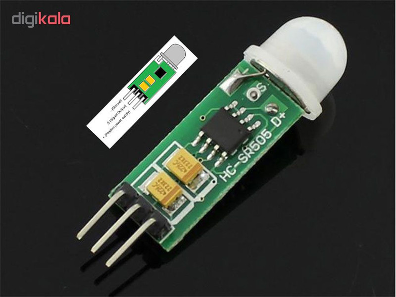 سنسورهای PIR یا Passive Infra-Red برای تشخیص حرکت بر مبنای نور مادون قرمز ناشی از گرمای موجود در محیط کاربرد دارند. از همین رو استفاده از این سنسور ها در سیستم های امنیتی برای تشخیص حرکت انسان و یا ورود های غیر مجاز بسیار رایج می باشد. مدل HC-SR505 یک ماژول تشخیص حرکت براساس نور مادون قرمز ساطع شده از سطح اجسام گرم مانند بدن انسان است. این ماژول قادر به کنترل خودکار خود با حساسیت و قابلیت اطمینان بالا است. به دلیل اندازه فوق العاده کوچک و کار با توان پایین به میزان زیادی استفاده میشود. HC-SR505بعضی قابلیتهای برادر بزرگتر خود یعنی HC-SR501 که انتخابی بسیار رایج برای بسیاری از پروژه هاست را ندارد مثلا رنج تشخیص در HC-SR501 حدود 7 متر است در حالیکه این محدوده برای HC-SR505 حدود 3 متر است و همچنین تاخیر بین تکرارها قابل تنظیم است درحالیکه راهاندازی ها در HC-SR505 به صورت پیشفرض قابل تکرار است و امکان تنظیم تاخیر بین تکرارها نیز وجود ندارد. از سوی دیگر HC-SR505 دارای ابعاد کوچکتر و مصرف جریان کمتر بوده و در عین حال قابلیت اعتماد مشابه با HC-SR501 دارد. این ماژول دارای کارآیی نسبتا مناسب و موثری است و استفاده از آن هم بسیار آسان است بدین صورت که خروجی سنسور تشخیص حركت مستقیما به یکی از پایه های میکروکنترلرمتصل میگردد و در صورتی که هر نوع حرکتی توسط این سنسور تشخیص داده شود مقدار این پین یک می گردد. راه اندازی اولیه و کالیبره شدن این سنسورها چیزی در حدود 10 تا 60 ثانیه به طول می انجامد و در طی این مدت برای تنظیم دقیق نباید در شعاع دید آنها حرکتی انجام پذیرد.