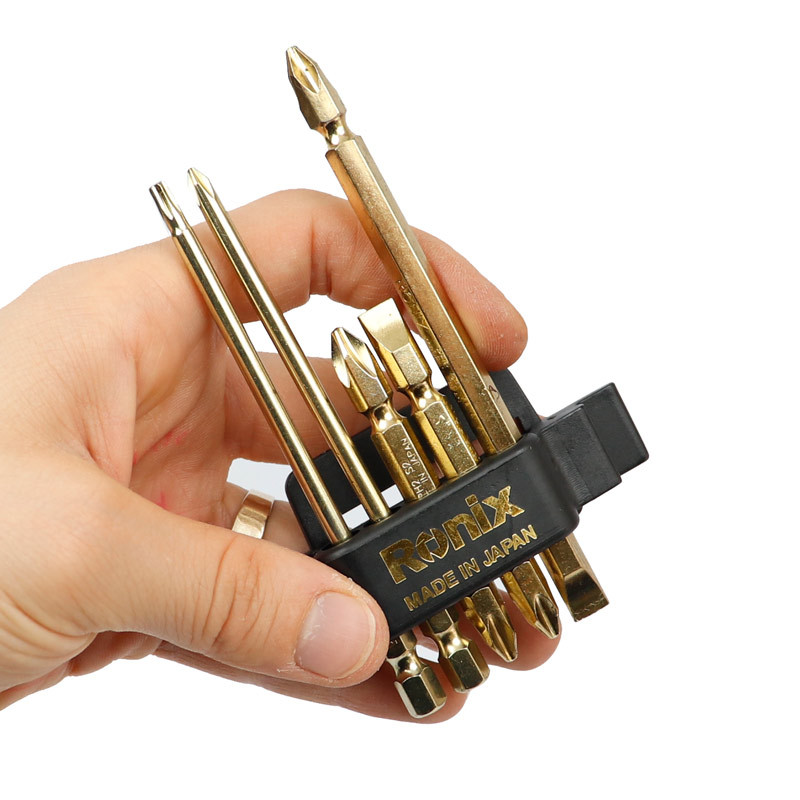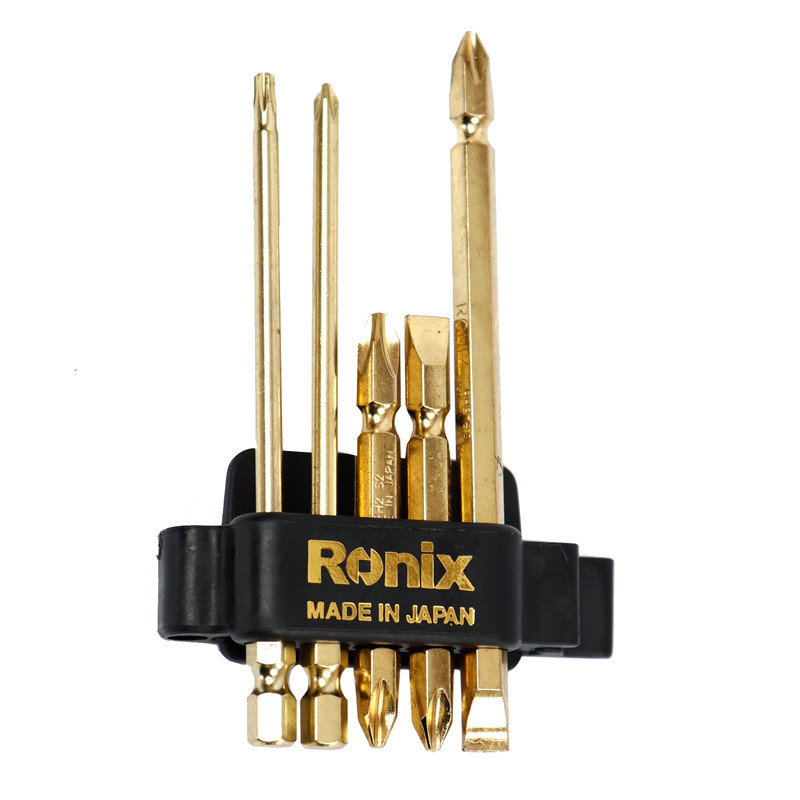 ست سری پیچ گوشتی مدل RH-5420 محصولی از برند رونیکس بوده و ساخت کشور ژاپن است. این ست شامل ۵ عدد سری دو سو و چهار سو بوده که از جنس فولاد ساخته شده و با روکشی طلایی رنگ و ضد زنگ پوشانده شده اند تا مقاومت بیشتری در برابر فرسودگی و ضربه داشته باشند. محفظه نگهدارنده سری پیچ گوشتی ها به گونه ای طراحی شده که می توانید آن را به کمربند خود متصل کرده و به راحتی به آن ها دسترسی پیدا کنید. ست رونیکس به شکل دو سر طراحی شده و قابل استفاده از هر دو جهت آن امی باشد، ضمنا سری های پیچ گوشتی خاصیت آهنربایی دارد. علاوه بر آن وزن کلی محصول نیز مناسب بوده و ابعاد آن به گونه ای است که می توانید به آسانی در هر مکانی همراه خود داشته باشید.