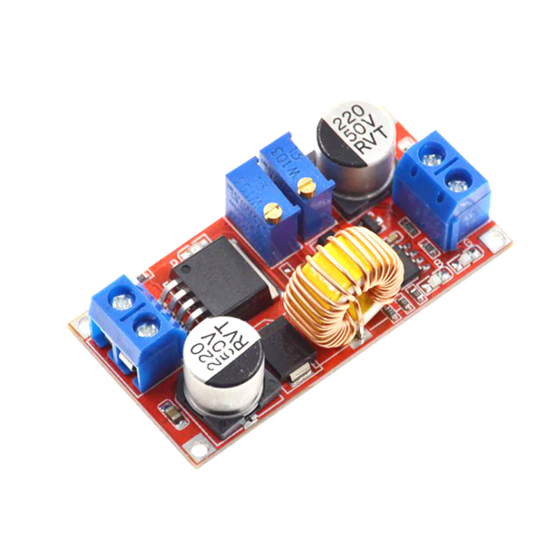 عملکرد این ماژول، کاهش ولتاژ dc و کنترل جریان تا حداکثر 5 آمپر است. به این صورت که یکی از پتانسیومتر های موجود، برای تنظیم ولتاژ خروجی و دیگری برای تنظیم جریان است. با توجه به قابلیت تنطیم جریان، از کاربرد های این ماژول میتوان به استفاده به عنوان شارژر باتری و درایور ال ای دی اشاره کرد.