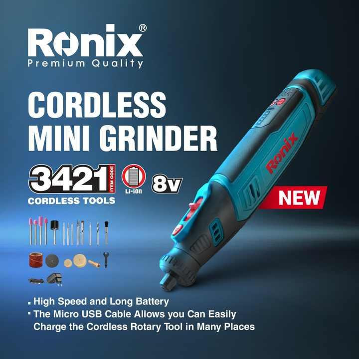 فرز مینیاتوری شارژی 3421 رونیکس مجهز به یک موتور DC 8 ولت است که سرعتی بالغ بر 30000 دور در دقیقه تولید کرده و به ابزارگیر 3.2 میلی متری خود منتقل می کند. سرعتی که در 5 حالت مختلف، در بازه 5000 تا 30000 دور در دقیقه و متناسب با سطح کار شما قابل تنظیم است.