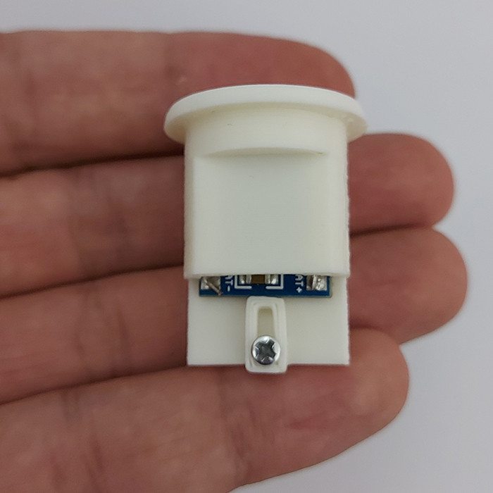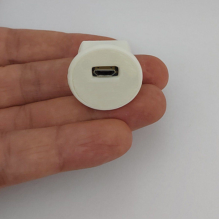 محصول فوق قاب شارژر باتری مختص ماژول Tp-4056 بصورت روپنلی می باشد. در بخش پورت فضایی بیشتر قرار دارد که پس از نصب بروی پنل، نور چراغهای ماژول براحتی دور سوکت را احاطه کند که علاوه بر زیبایی و کنترل شارژ ، براحتی فیش های بزرگتر از حد استاندارد به ماژول قابل اتصال باشد. قطر سوراخی که این قاب در آن قرار می گیرد می بایست 22 میلیمتر و پشت آن حدود 33 میلیمتر فضا وجود داشته باشد. با توجه به اینکه این ماژول کوچک از بهترین برندهای شارژر باتری بسیار قدرتمند و بهتر عمل می کند با قرار دادن این ماژول درون قاب بر بهبود و سهولت استفاده از آن افزوده خواهد شد. قابل ذکر است با توجه به وجود نسخه های مختلف از این ماژول ، این قاب مختص ماژول هایی از Tp4056 بوده که ابعاد برد آن 22x17 میلی متر باشد. این محصول دارای یک واشر مستطیلی بوده که می بایست بعد از نصب ماژول در بخش انتهایی آن پیچ یا چسب شود. (پیچ همراه محصول نیست)