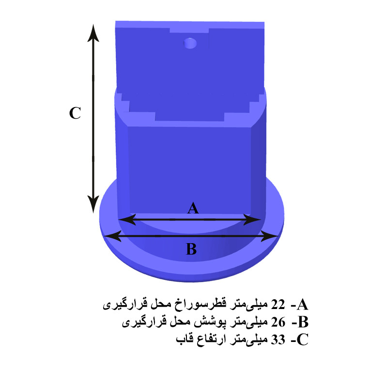 - قابل نصب در سوراخ دایره با قطر 22 میلیمتر با فضای پشتی 33 میلیمتر