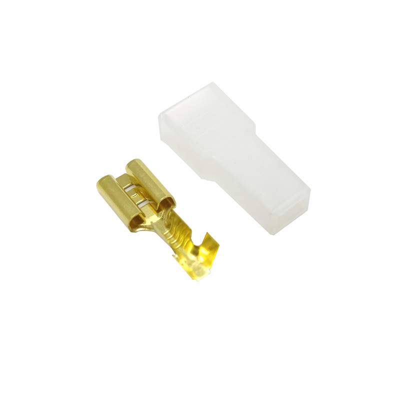 سرسیم کشویی طلایی از جنس برنج بوده و همراه آن روکش پلاستیکی نیز دارد. این سرسیم قابلیت تحمل 12 آمپر را دارد. قفل کننده ندارد و قایلیت پرس روی سیم را دارد.