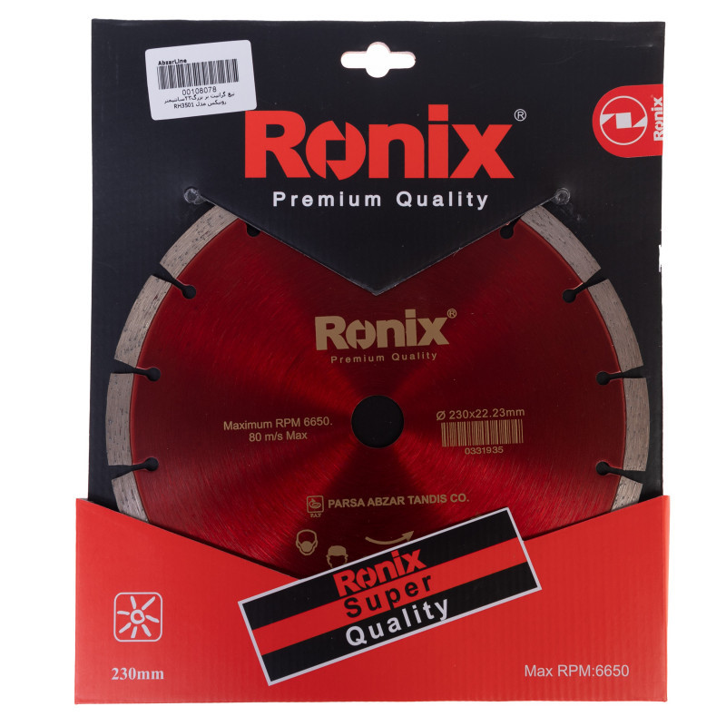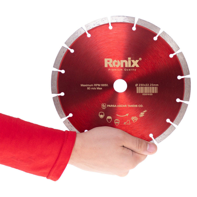 صفحه گرانیت بر بزرگ رونیکس مدل RH-3501 سایز 22.23 × 230 میلی متر، از انواع صفحه ای است که دارای تیغهای برای برش انواع سنگ از جمله سنگ مرمر و گرانیت است. این صفحه گرانیت بر، قطری برابر 230 میلیمتر دارد و جزو صفحات بزرگ و عریض برش محصوب میشود.این لوازم جانبی، به تیغ الماسههایی قدرتمند مجهز شده که نقش اصلی را در برش سنگ بر عهده دارند و دارای شیارهایی بلند، یکدست و برنده هستند که باعث افزایش کیفیت و قدرت برندگی این ابزار شدهاند. الماسههای این صفحه برش رونیکس با فناوریهای روز دنیا تولید شدهاند و با کاهش اصطکاک تیغه با سطح کار، سرعت را افزایش میدهند تا تیغ به صورت بهتر و راحتتری کار کند. این الماسهها، 10 میلیمتر پهنا و 2.6 میلیمتر ارتفاع دارند. ضمن اینکه به 16 قسمت برابر تقسیم شدهاند.