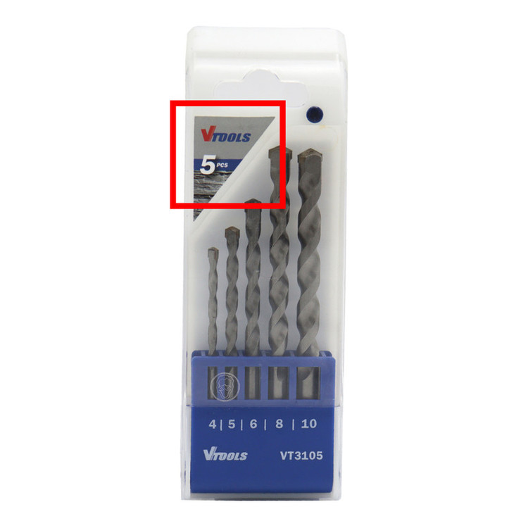 - مجموعه 5 عددی مته الماسه بتن وی تولز - سایز های مته ها : 4 . 5 . 6 . 8 . 10 میلیمتر می باشد - مناسب برای سوراخکاری با دستگاه دریل - قابل استفاده برای مصالح، دیوار و سیمان - کیفیت ساخت بالا - دارای بستهبندی مناسب