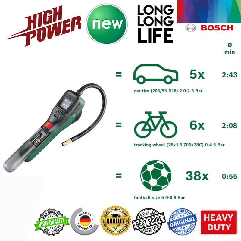 شرکت بوش آلمان که همیشه در تولید ابزار در دنیا کاملا بی رقیب بوده است اینبار با طراحی و تولید کمپرسور شارژی 3.6 ولت مدل Easy Pump که از تکنولوژی بسیار پیشرفته بهره می برد و دارای باتری قدرتمند لیتیوم آیونی 3.6 ولتی می باشد قدرت خود را به رخ بزرگان این عرصه کشیده است.