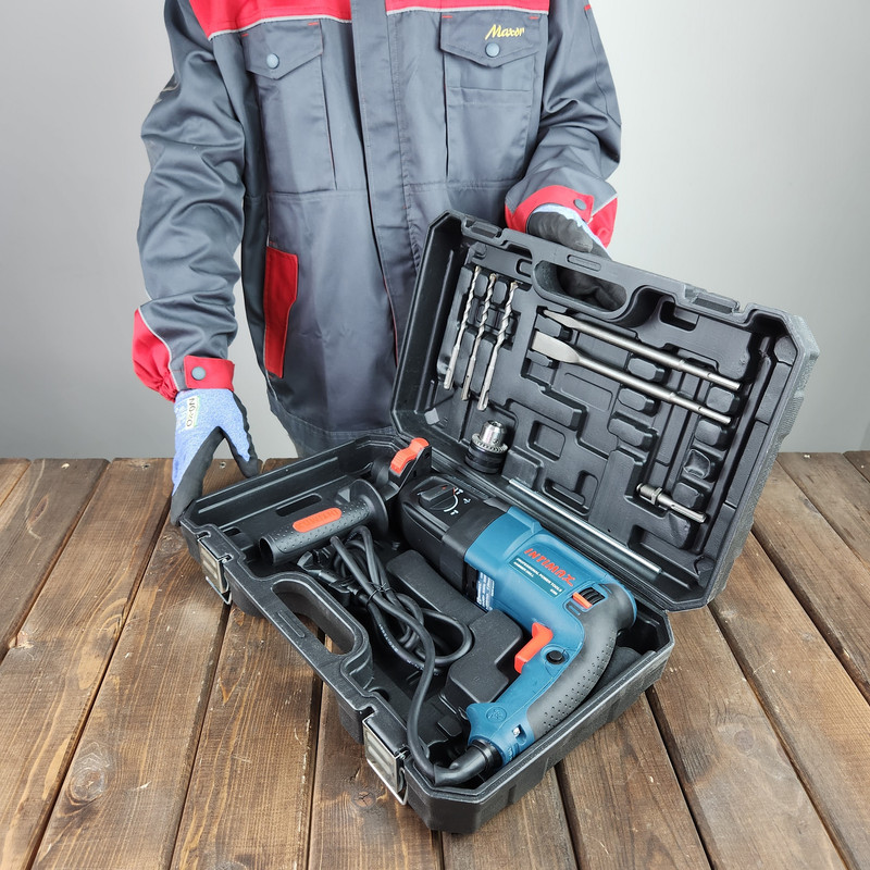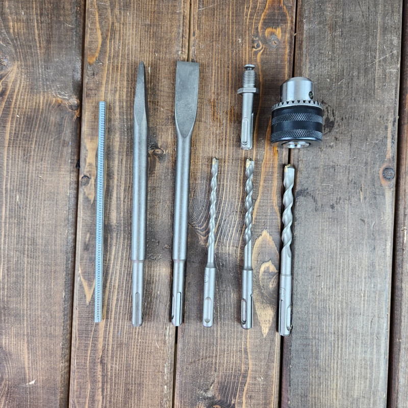 -دارای یک عدد سه نظام 13 میلیمتر، رابط چهار شیار به سه نظام، دو عدد قلم نوک تیز و تخت، سه عدد مته می باشد