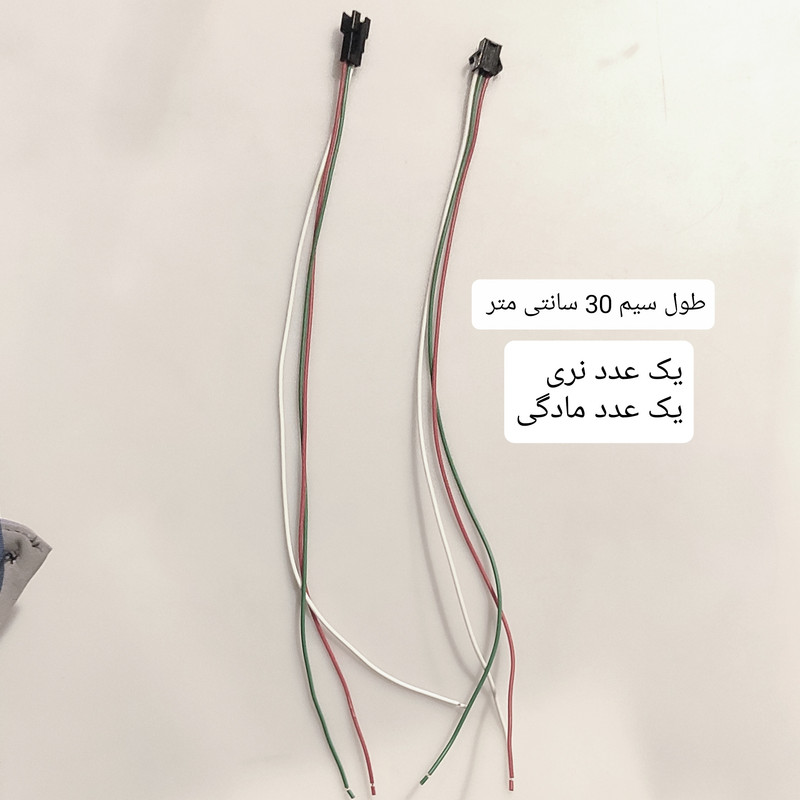 یک بسته شامل سوکت کانکتور sm سه سیم یک عدد نری و یک عدد مادگی با هم . طول سیم 30 کانکتور سانتی متر می باشد جنس سیم افشان 100 درصد مسی 8 رشته ، مناسب برای اتصال بین دو سیم یا وسیله برقی انواع ریسه ال ای دی هوشمند دو سیم یا سه سیم می باشد