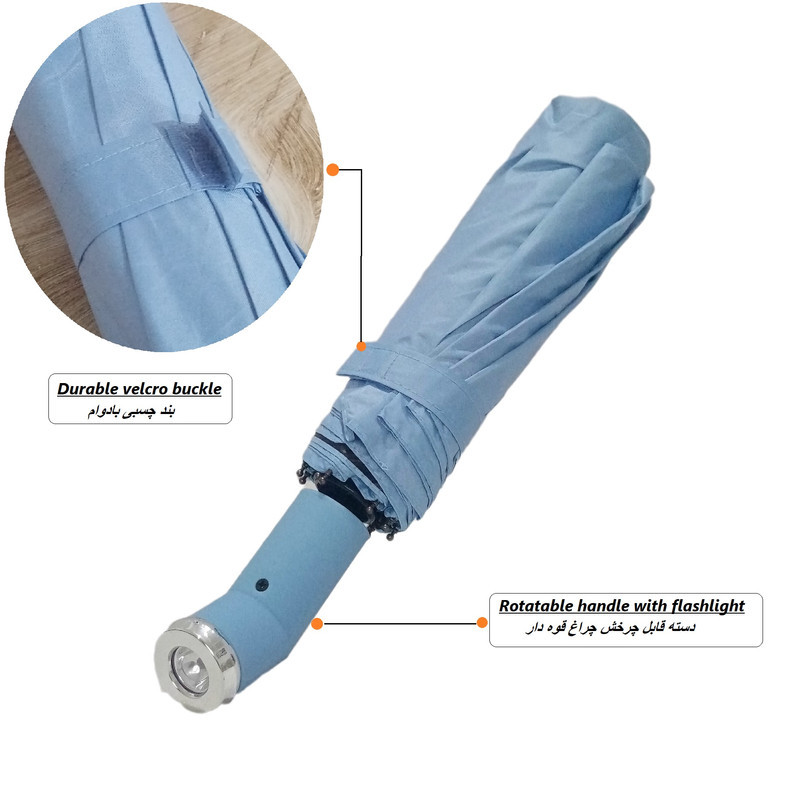 چتر چراغ قوه دار شاهی تمام اتوماتیک، 10 فنر، ضد باد و ضد اشعه مضر UV خورشید بهترین گزینه برای خرید چتر می باشد. در این چتر از 10 فنر دوبل مستحکم فایبر گلاس که در تصاویر آلبوم نیز مشخص است استفاده شده است که همین امر باعث مقاومت آن در زمان وزش شدید باد می شود و از آسیب رسیدن به چتر جلوگیری می کند. همچنین چراغ قوه دار بودن این چتر شرایط مناسبی را برای روشن کردن مسیر حرکت در شب های بارانی برای شما فراهم کرده است.