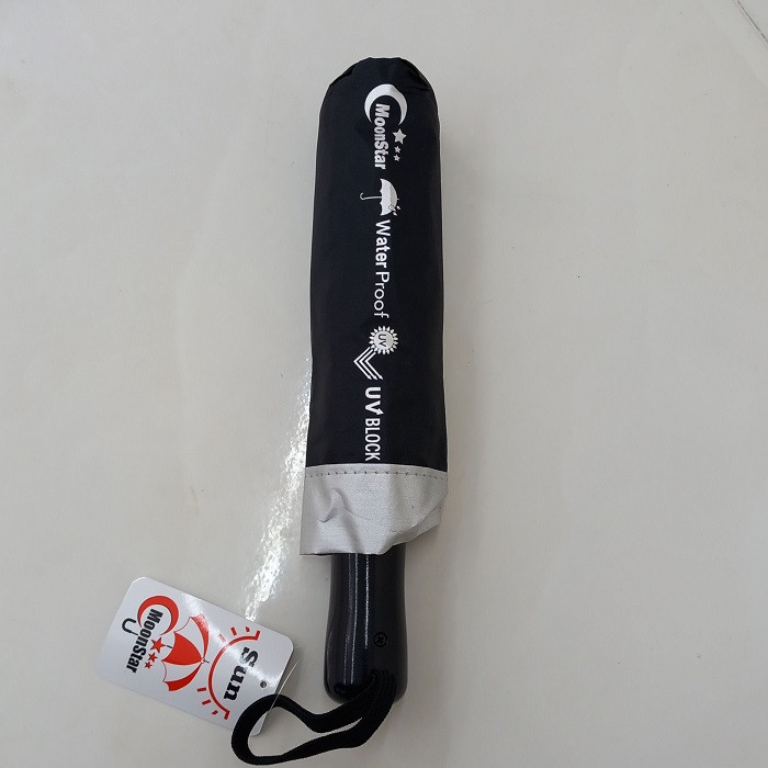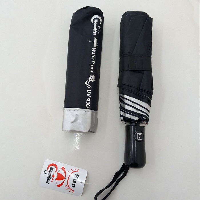 چتر UV - moon star20.25 نیمه اتوماتیک 8 فنر (ضد باد) ، این چتر از معدود چترهای است که از 8 فنر مستحکم ضد باد برخوردار است همچنین چتر در مقابل شدیدترین وزش بادها ایستادگی می کند و نمیشکند ، پارچه چتر از جنش شمعی 100درصد آب گریز است که به هیچ عنوان خیس نمیشود ، چتر دارای کاور مخصوص است و در حالت بسته تنها 28 سانتی متر طول دارد که حمل آن را بسیار راحت و اسان میکند ، جنس دسته از پلاستیک باکیفیت با روکش ضد لغزش است و دارای بند مخصوص میباشد ، چتر حالت 3تاشو دارد و با یک دکمه باز و بسته میشود و فقط تاکردن ان بصورت دستی میباشد.