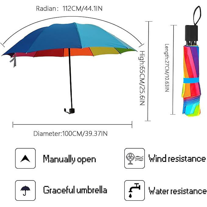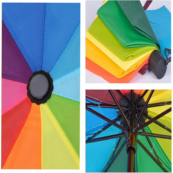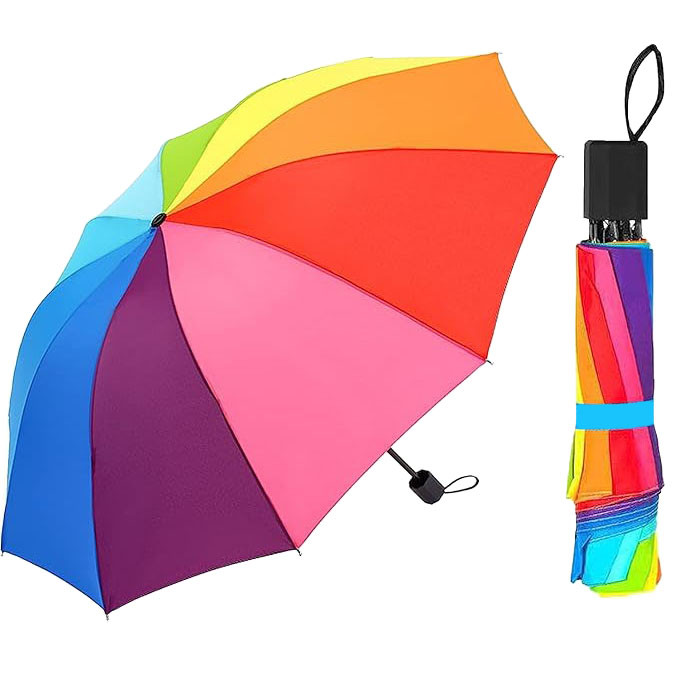 چتر مدل رنگین کمان جمع شونده کالایی ساده و شیک است که در ان به جزئیات زیادی من جمله مفاصل با کیفیت ضامن های دقیق دوخت و پارچه و جنس الیاژ دسته و ... توجه شده .