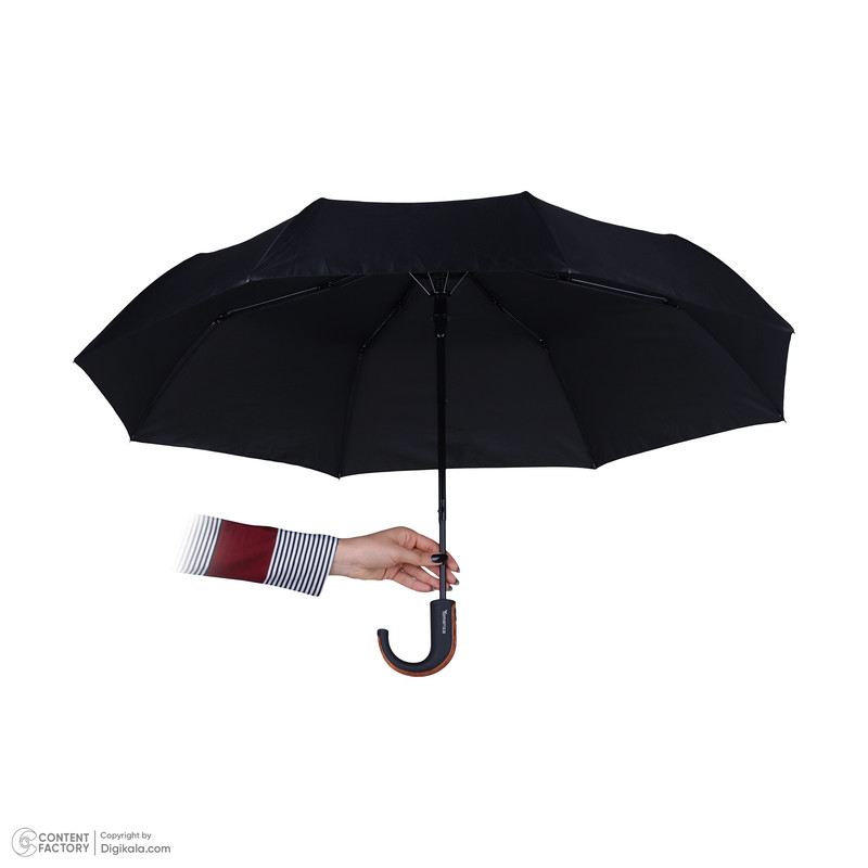 جنس پارچهی پلی استر این چتر امکان پوشش کامل بدن شما را در برابر باران و آفتاب میدهد. همچنین، دارای دستهی عصا مانند است که از راحتی استفاده و حمل آن بهرهمند میشوید. همچنین، با قابلیت باز شدن با ضامن که در دسته قرار دارد، میتوانید چتر را با حرکتی آسان و سریع باز و بسته کنید، حتی در شرایطی که دستهای شما پرترافیک هستند.