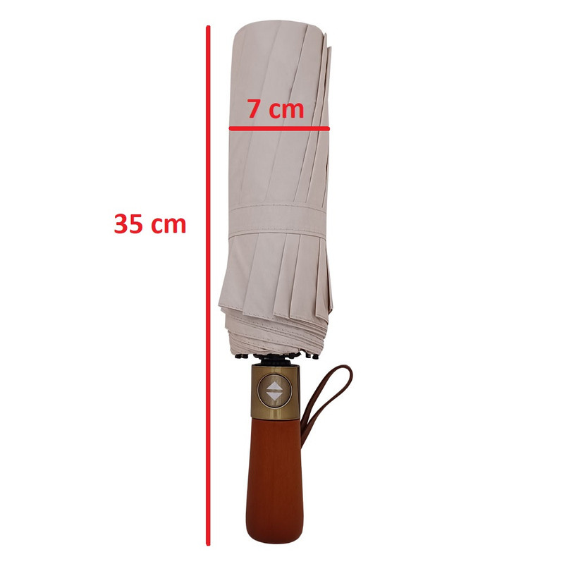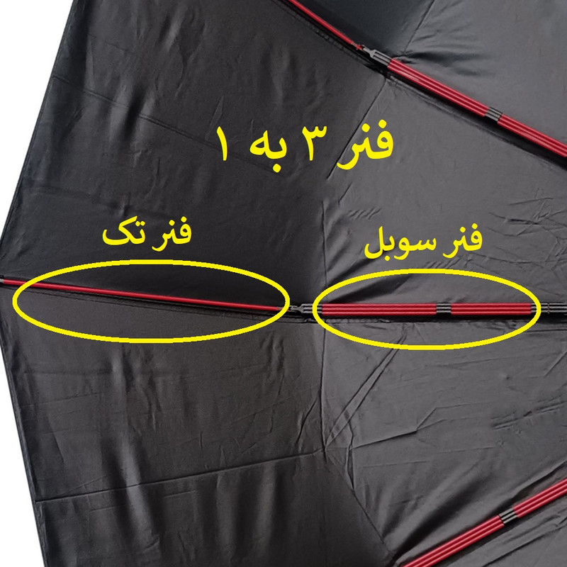 سایر توضیحات : باز و بسته شدن چتر بصورت تمام اتوماتیک، 10 فنر 3 به 1، دسته چوبی، بند چرمی، پارچه دولایه (لایه داخلی ضد اشعه یووی خورشید و همواره به رنگ مشکی)