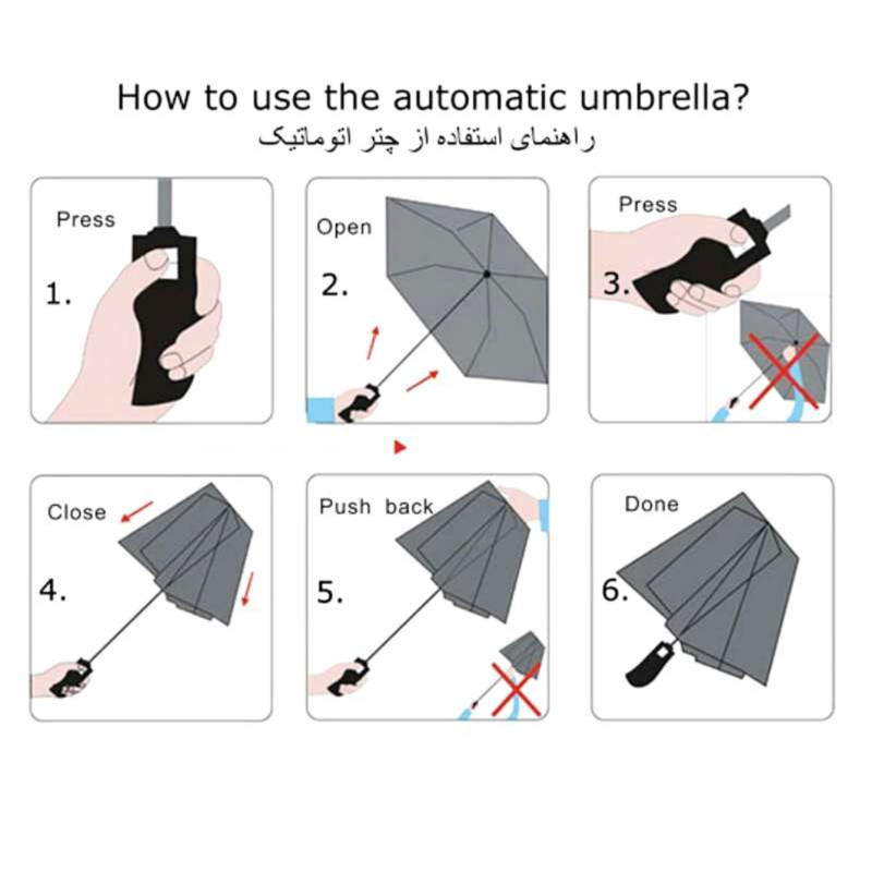 برای باز و بسته شدن چتر حتما از دکمه تعبیه شده بر روی دسته چتر استفاده کنید