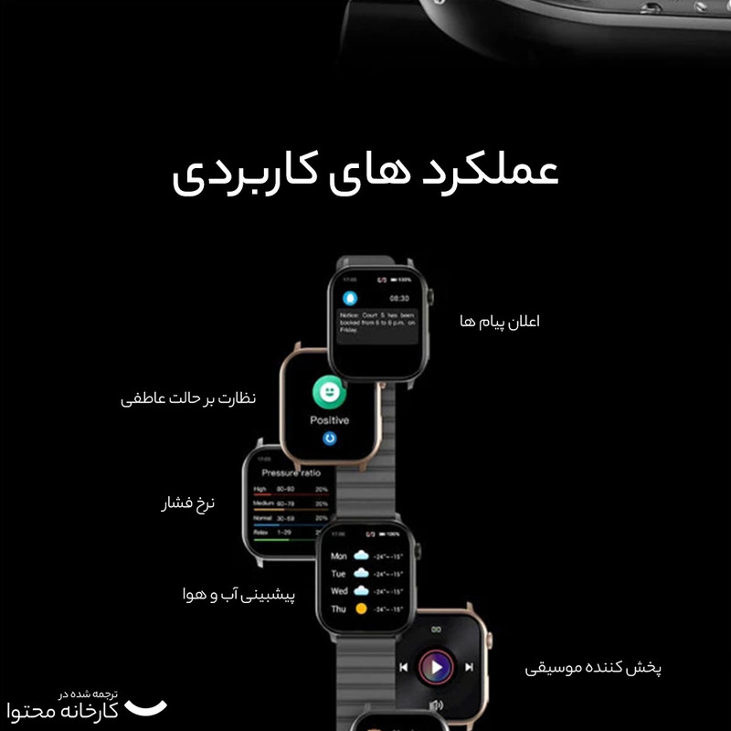 قابلیتهای ساعت هوشمند : صفحه نمایش رنگی , صفحه نمایش لمسی , کنترل موسیقی (Music Player) , کنترل سطح اکسیژن خون , قابلیت مکالمه از طریق بلوتوث