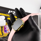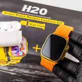 ساعت هوشمند مدل H20 ULTRA به همراه ایرپاد پرو ، یک پک کامل و با کیفیت از ساعت الترا و ایرپاد است که علاوه بر گارد محافظ ساعت و وایرلس شارژ ، دارای 7 بند جذاب است که شامل یک بند فلزی و چهار بند سلیکونی و یک بند پارچه ای و یک بند کنفی است . این محصول به رنگ طلایی تولیدشده که رنگ بدنه ساعت و بند فلزی داخل پک با یکدیگر ست میشوند . به هیچ عنوان این ساعت را با شارژر فست شارژ ، نباید شارژ کنید و حتما از شارژر های غیر فست شارژ استفاده کنید.